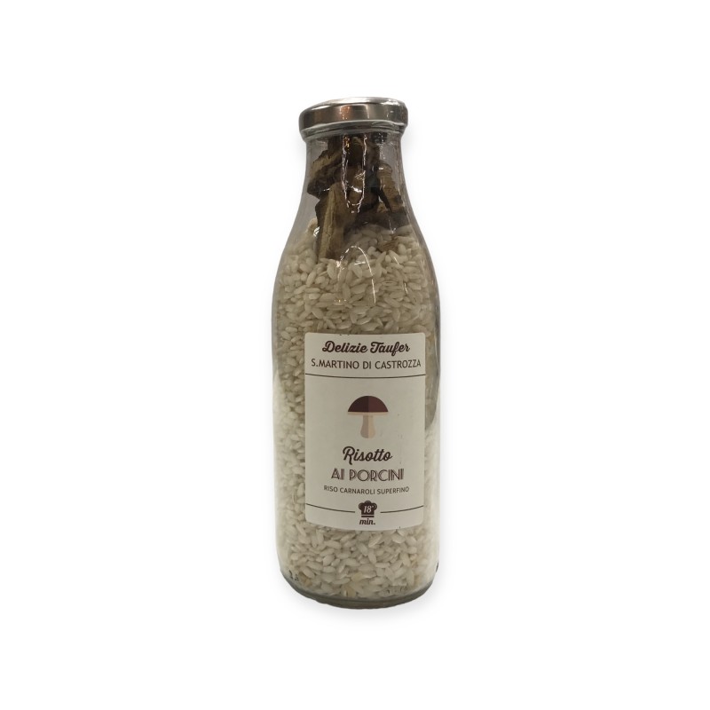 ZUTATEN: Italienischer Carnaroli-Reis, getrocknete Steinpilze (Boletus edulis und rel. Group) 2,6 %, Zwiebel. Es kann Spuren von Gluten, Nüssen und Weichtieren enthalten.