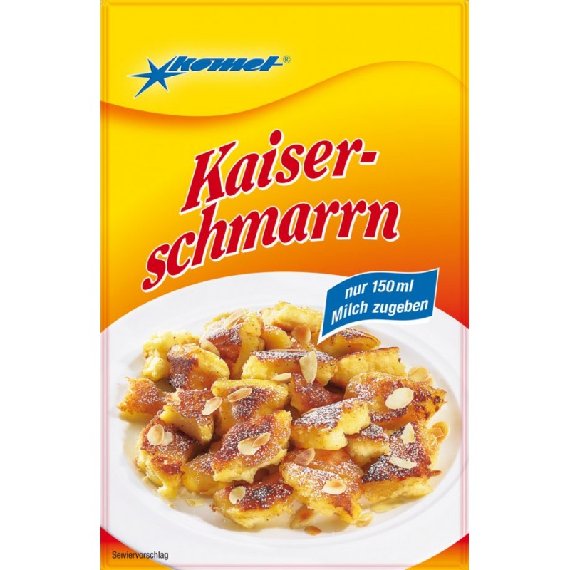 Kaiserschmarrn mit Milch (3,5%) und 10 g reinem Pflanzenöl zubereitet ergibt 2 Portionen und enthält durchschnittlich (ohne Puderzucker):
