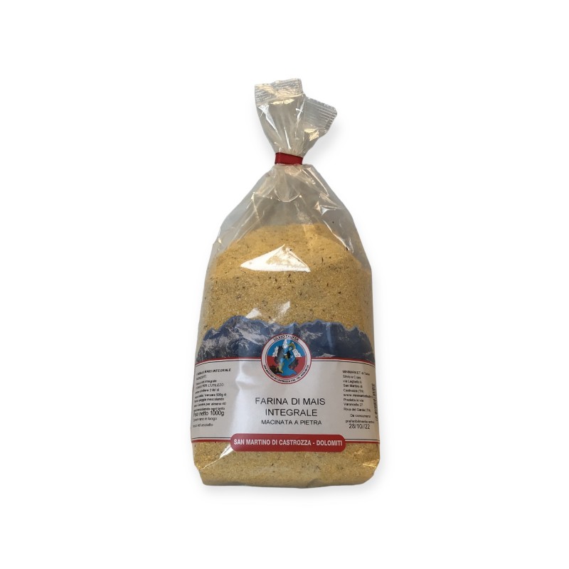 Farina di mais ricca in fibra, ottenuta dalla macinazione a pietra di mais vitrei dalla colorazione rosso-arancio, così da preservare maggiormente le sue caratteristiche organolettiche e nutrizionali.