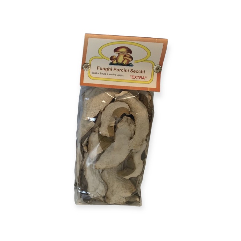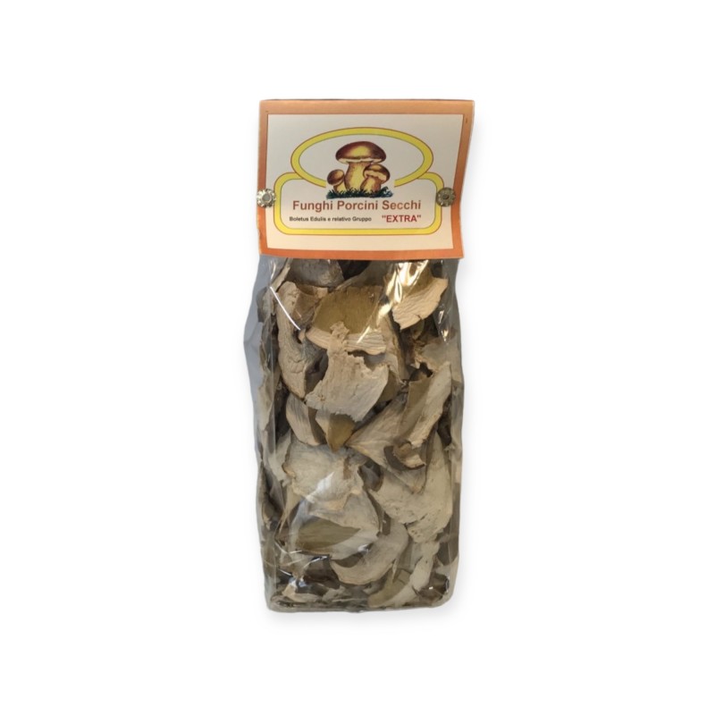 Caratteristiche del prodotto: trattasi di funghi porcini spontanei di bosco ben essicati, dal tipico aroma fungino medio intenso ben selezionati con fette intere e fratte di colore generalizzato dal bianco al crema
